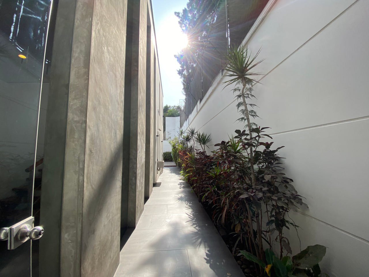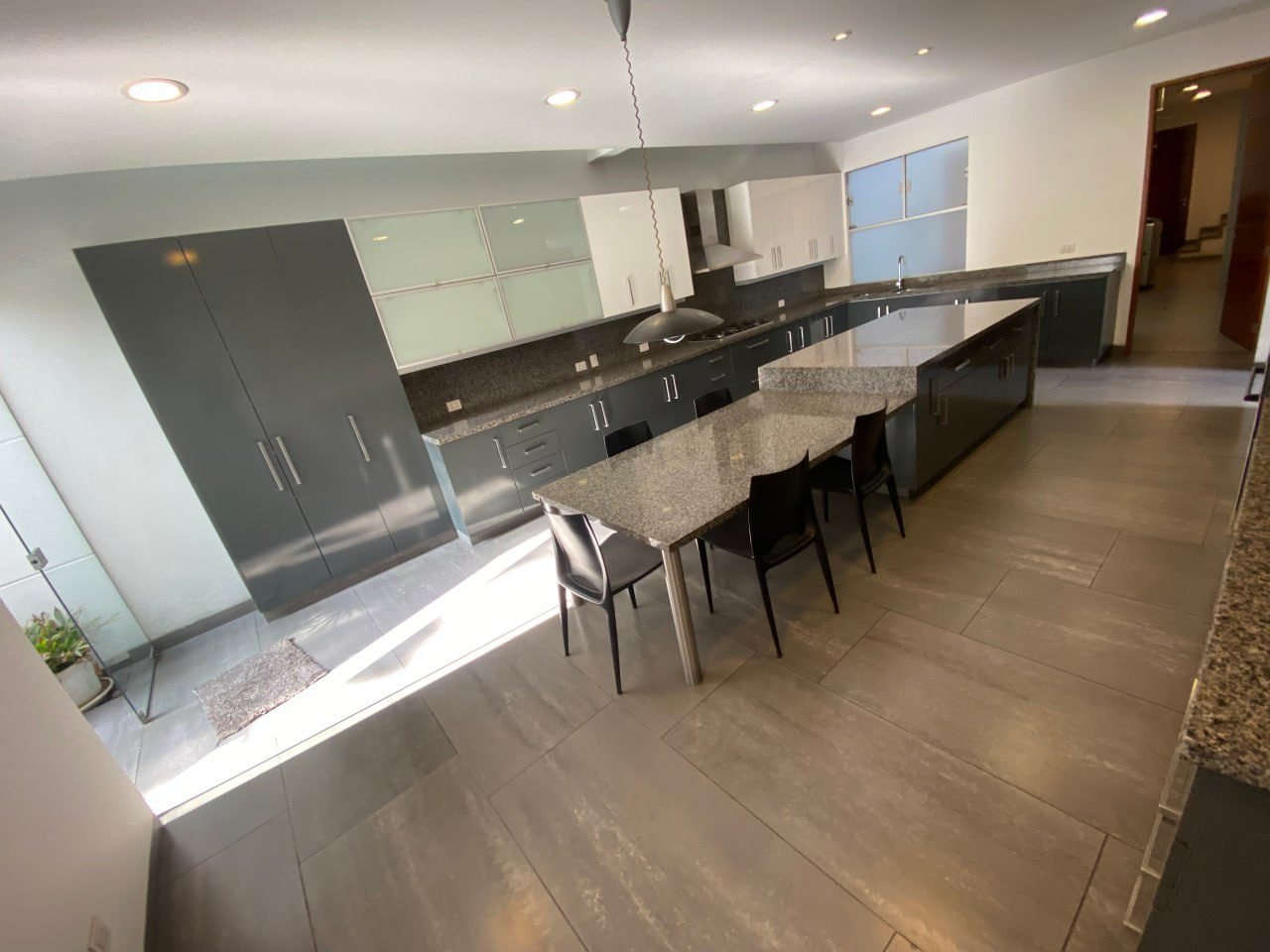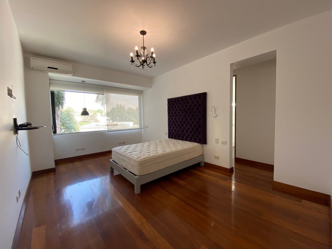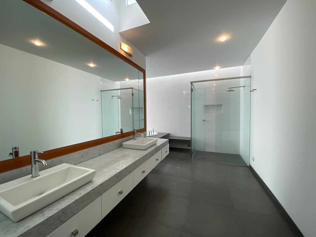 La propiedad cuenta con un área de terreno de 737 m² y un área construida de 658 m². Dispone de cuatro dormitorios, todos con baño incorporado, sumando un total de siete baños. El dormitorio principal incluye walk-in closet y jacuzzi. La distribución comprende hall de ingreso, sala con chimenea, comedor formal y comedor de diario, cocina abierta, lavandería, dos cuartos de servicio con baño y un sótano que integra un salón de billar, bar, depósito y un mini departamento con baño completo. Presenta techo de triple altura, aire acondicionado y sistema de música en el primer piso.