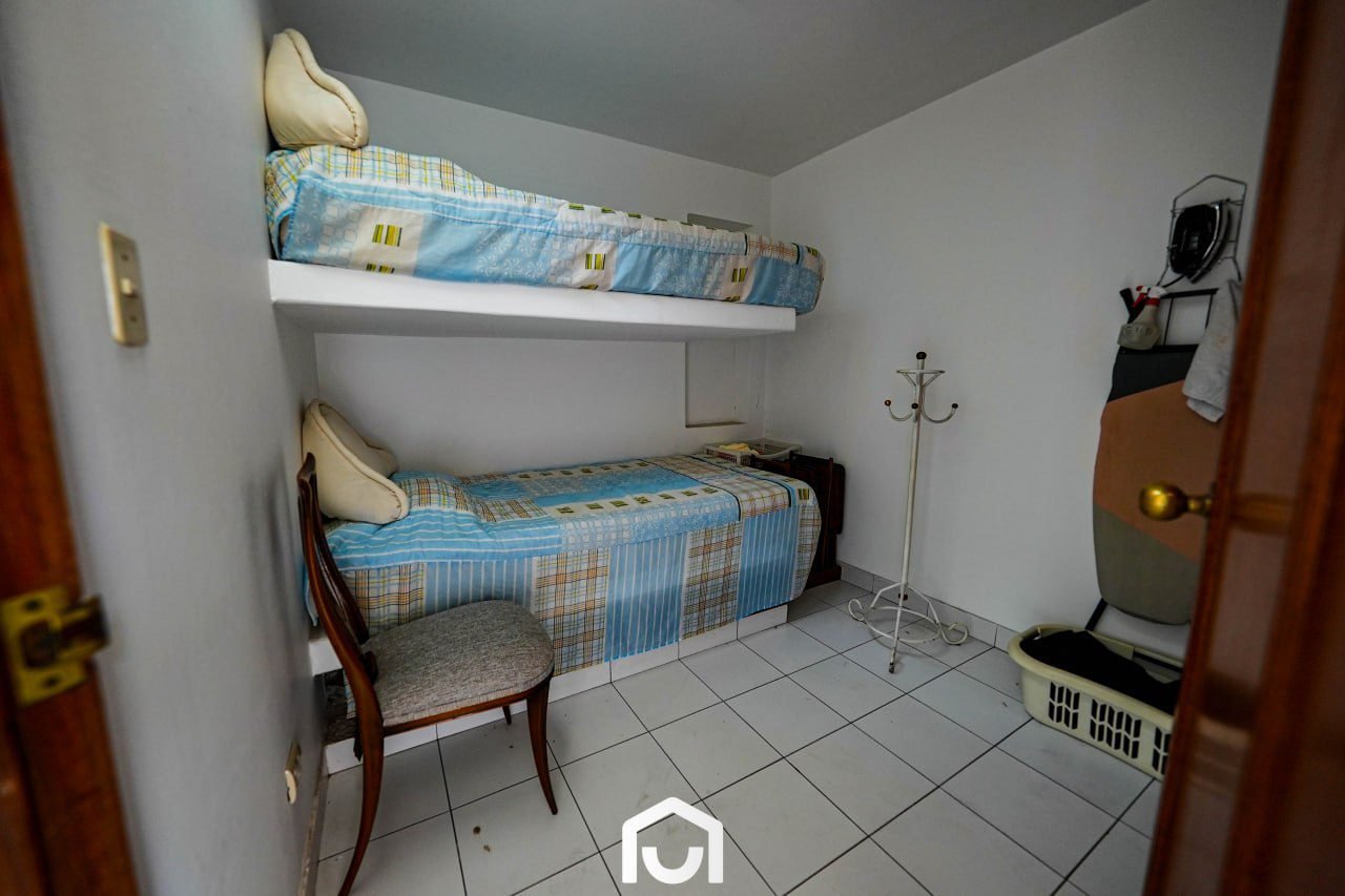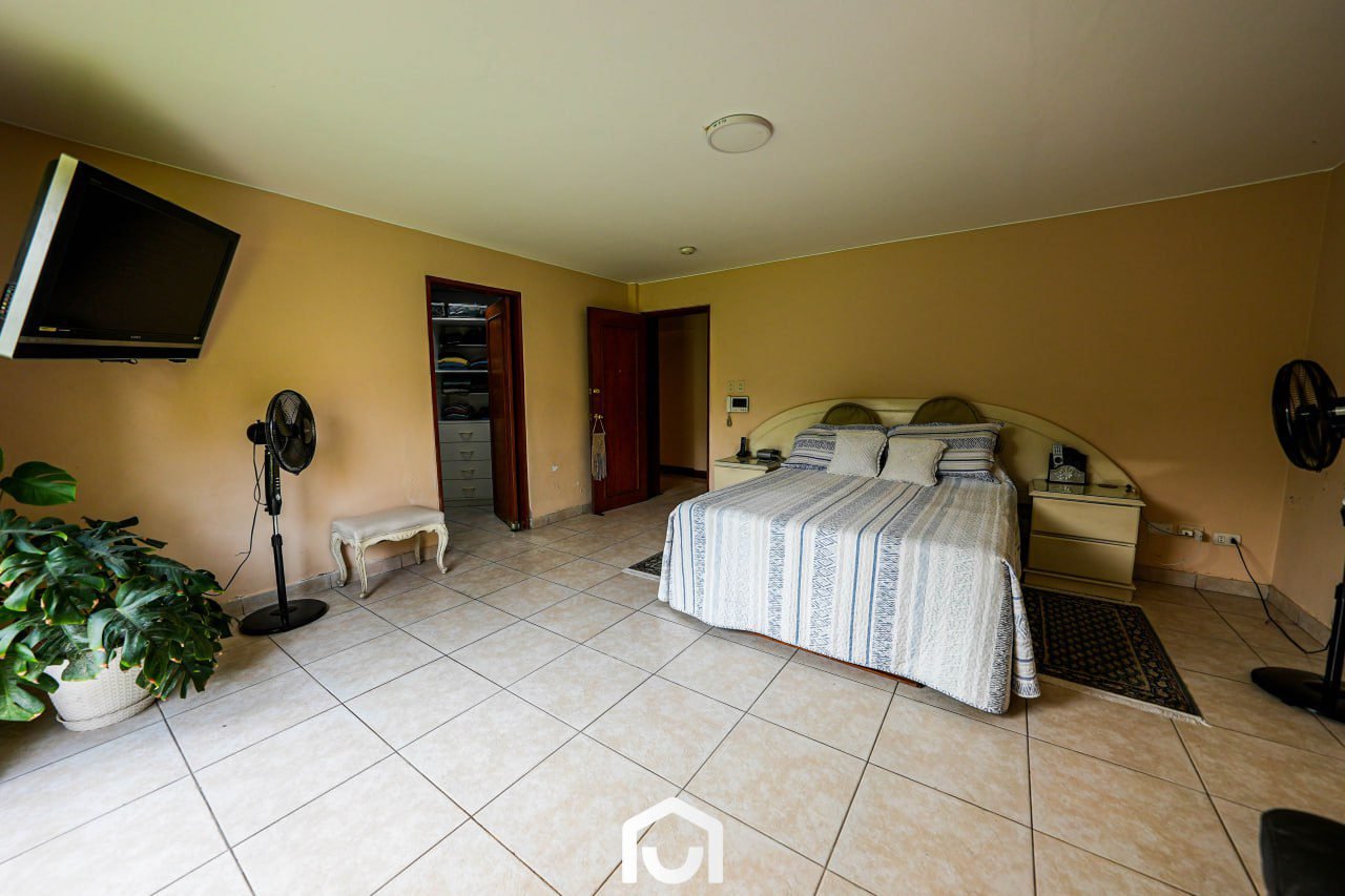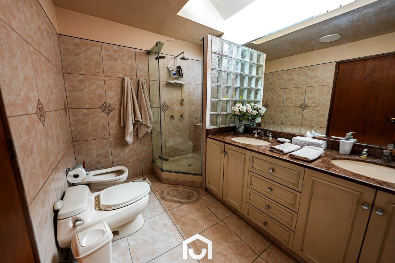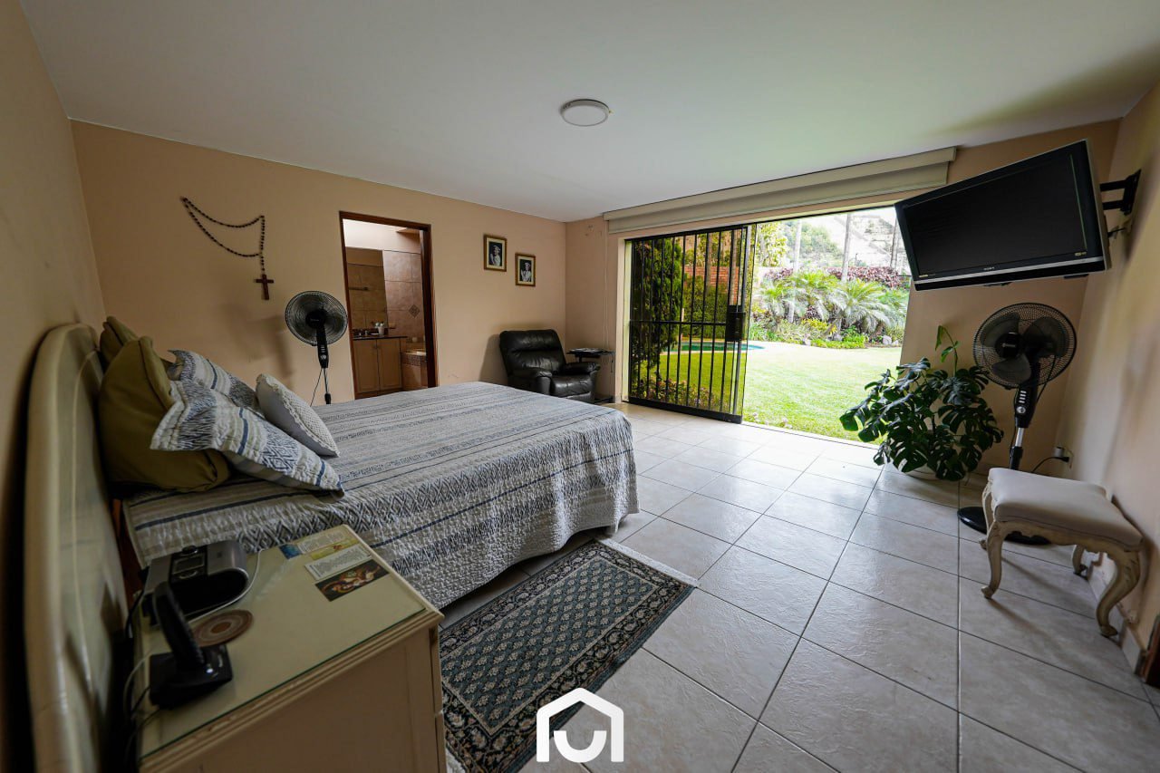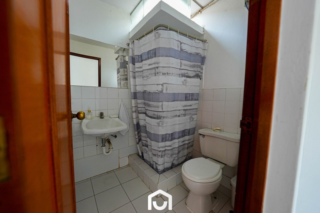 En el exterior se encuentran la terraza, piscina y un jardín amplio con sistema de riego automatizado por aspersión y goteo. Estos espacios complementan el área social de la vivienda y permiten su uso para actividades al aire libre.