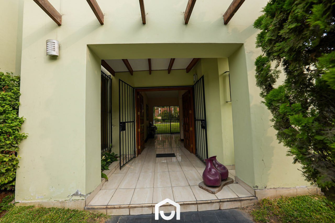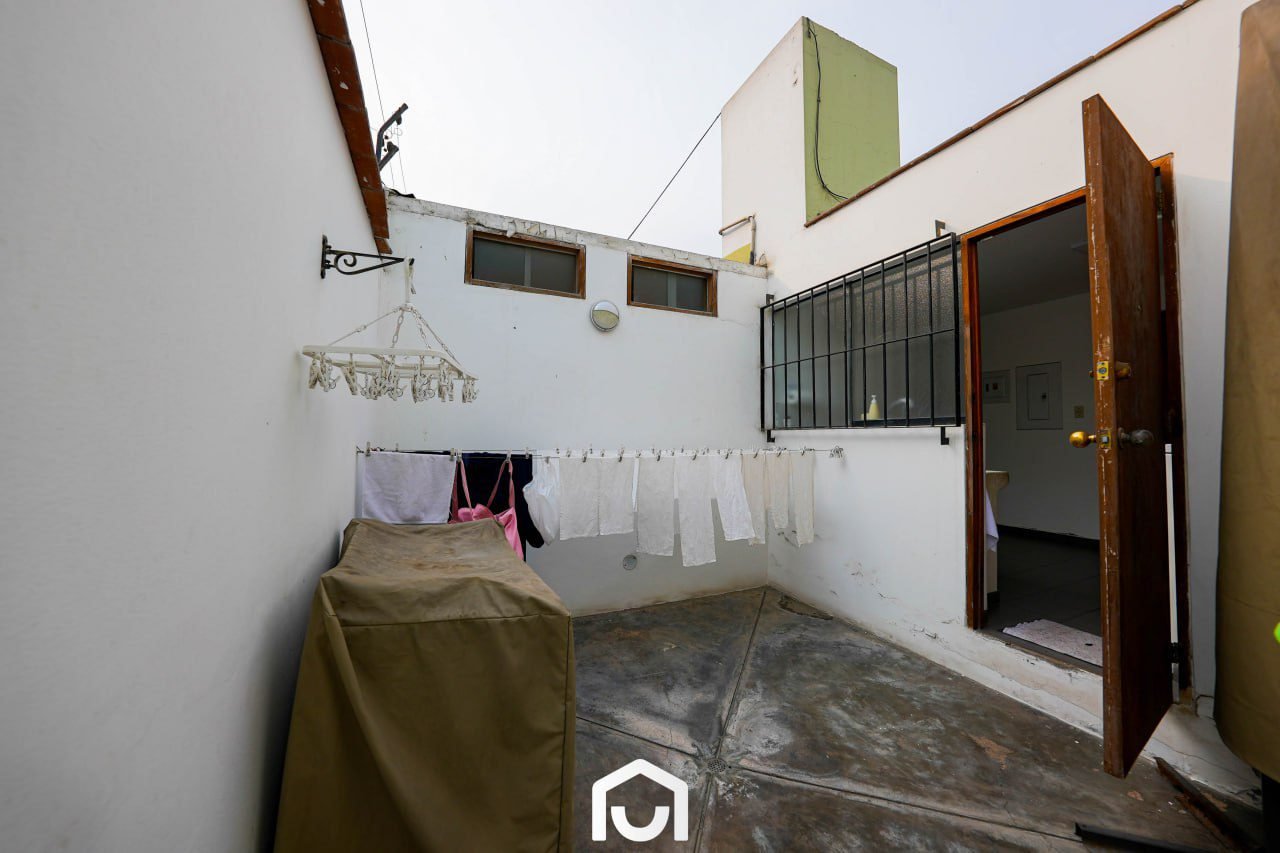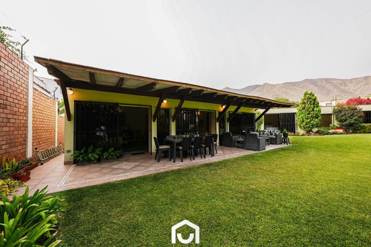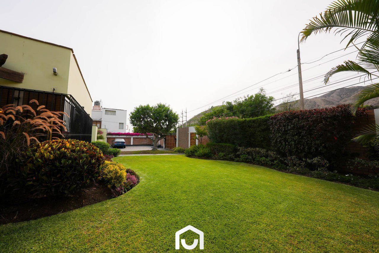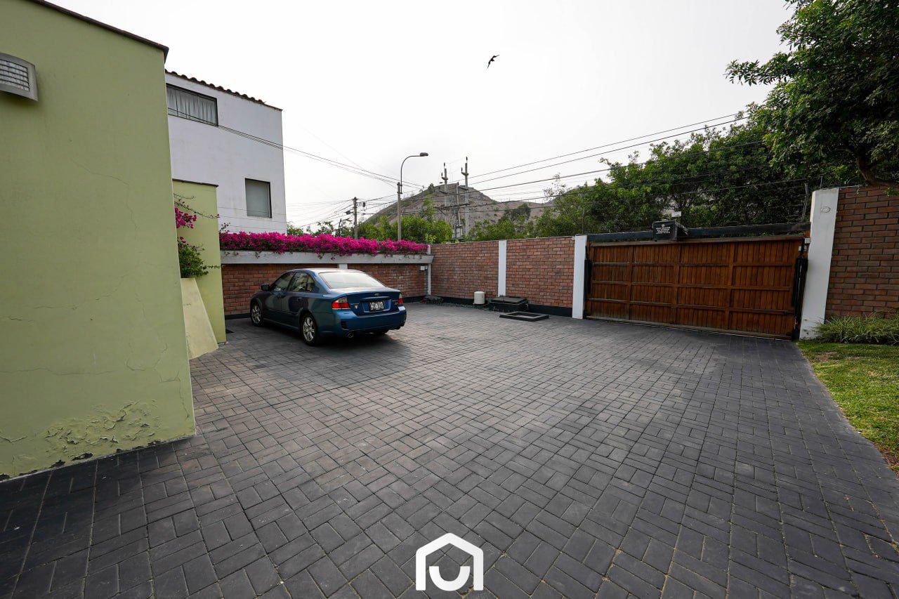 La vivienda presenta una distribución que separa las áreas sociales, privadas y de servicio. Cuenta con dos salas y comedor con techos de doble altura, cocina amplia con comedor de diario, y una sala de estar con espacio para TV, juegos y gimnasio. Dispone de tres dormitorios con vista al jardín, cada uno con baño incorporado; el dormitorio principal incluye jacuzzi. Los ambientes cuentan con buena iluminación y ventilación natural, techos altos y acabados en madera machihembrada. También incluye área de servicio completa, lavandería, tendal y un depósito amplio. La casa fue remodelada en 2023 y cuenta con sistema de seguridad que incluye cerco eléctrico, rejas, puertas blindadas e intercomunicadores con pantalla.