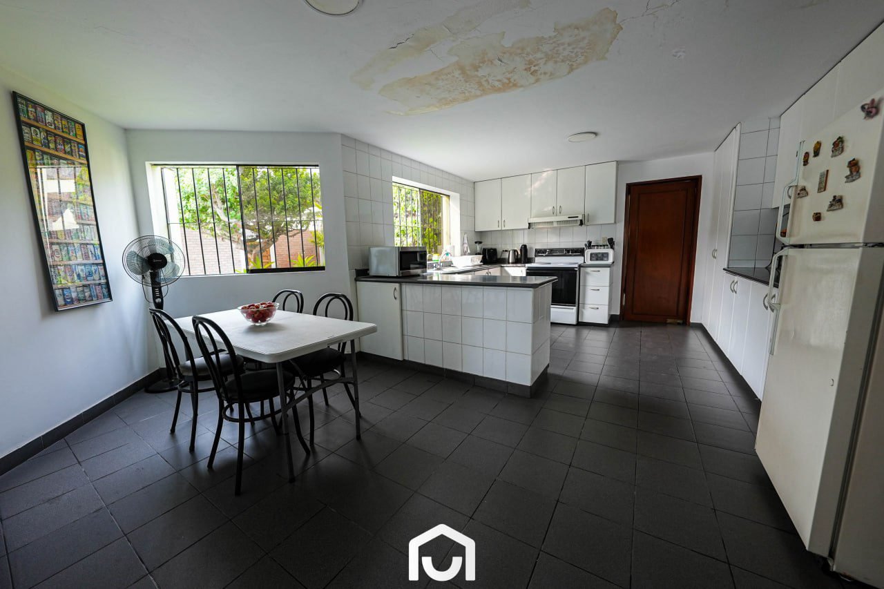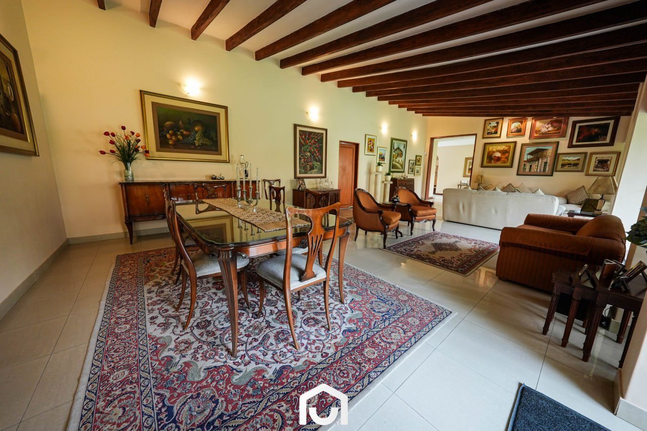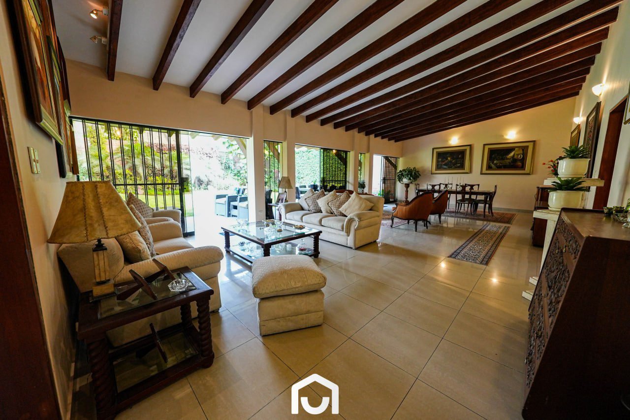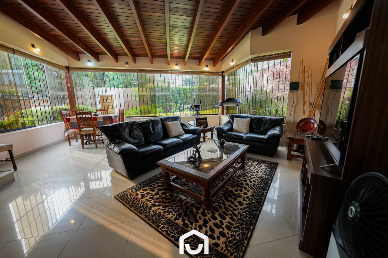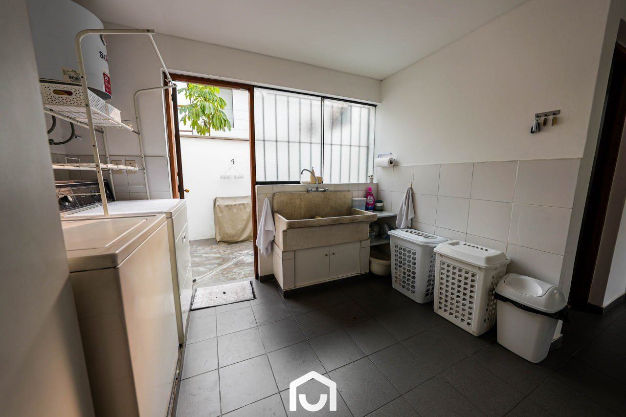 La vivienda presenta una distribución que separa las áreas sociales, privadas y de servicio. Cuenta con dos salas y comedor con techos de doble altura, cocina amplia con comedor de diario, y una sala de estar con espacio para TV, juegos y gimnasio. Dispone de tres dormitorios con vista al jardín, cada uno con baño incorporado; el dormitorio principal incluye jacuzzi. Los ambientes cuentan con buena iluminación y ventilación natural, techos altos y acabados en madera machihembrada. También incluye área de servicio completa, lavandería, tendal y un depósito amplio. La casa fue remodelada en 2023 y cuenta con sistema de seguridad que incluye cerco eléctrico, rejas, puertas blindadas e intercomunicadores con pantalla.