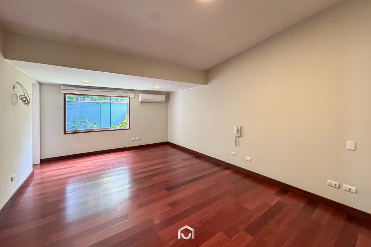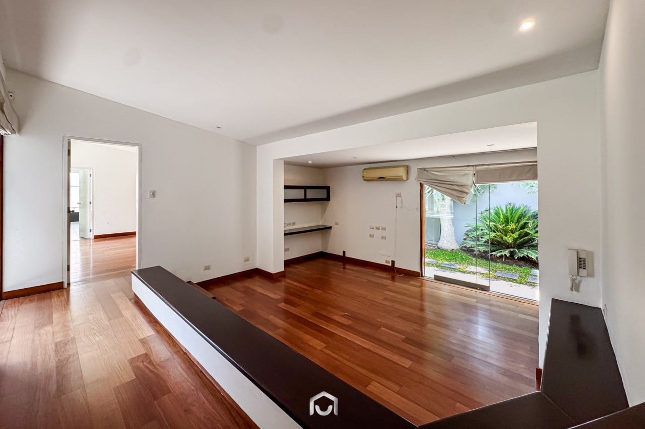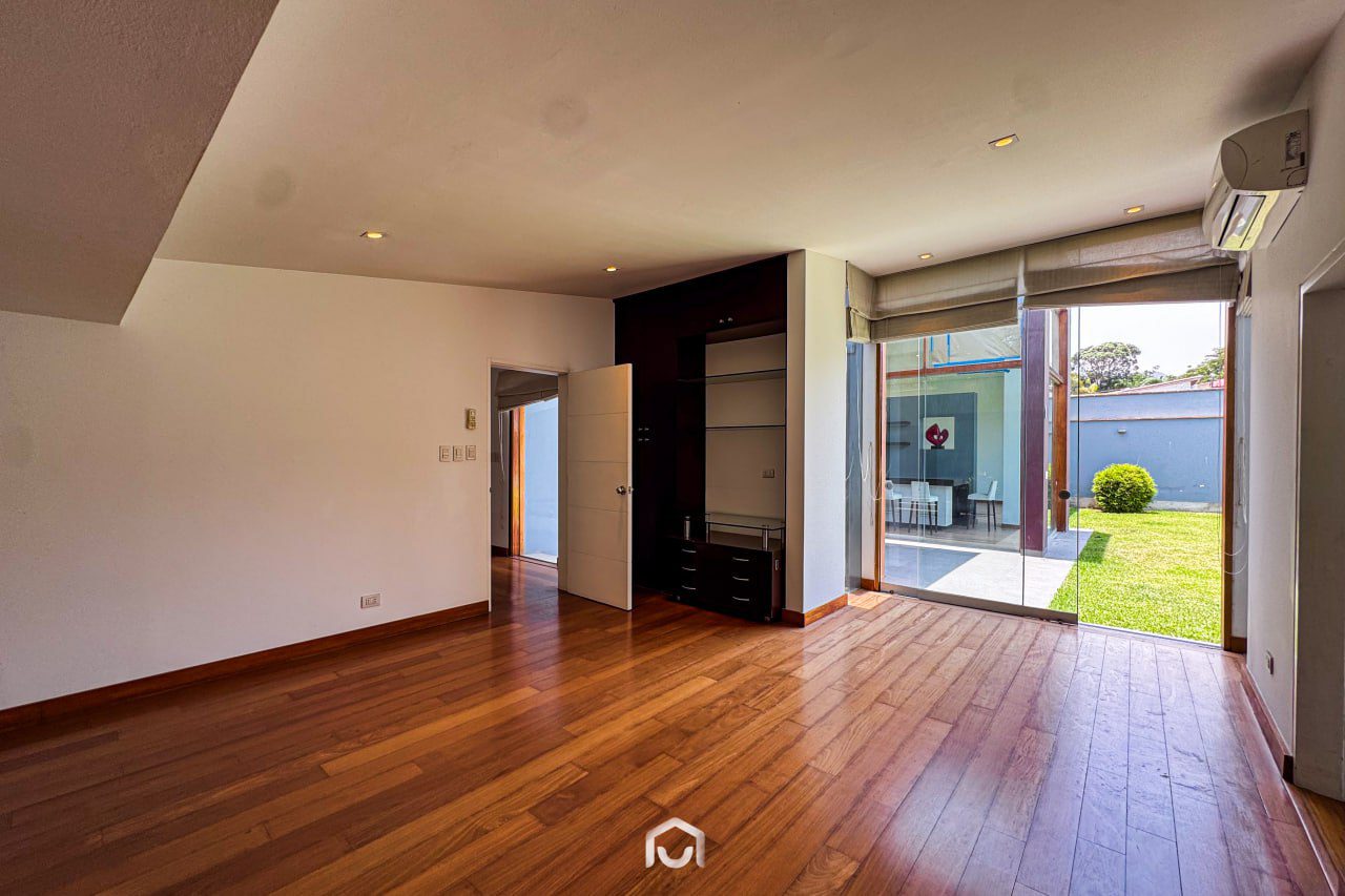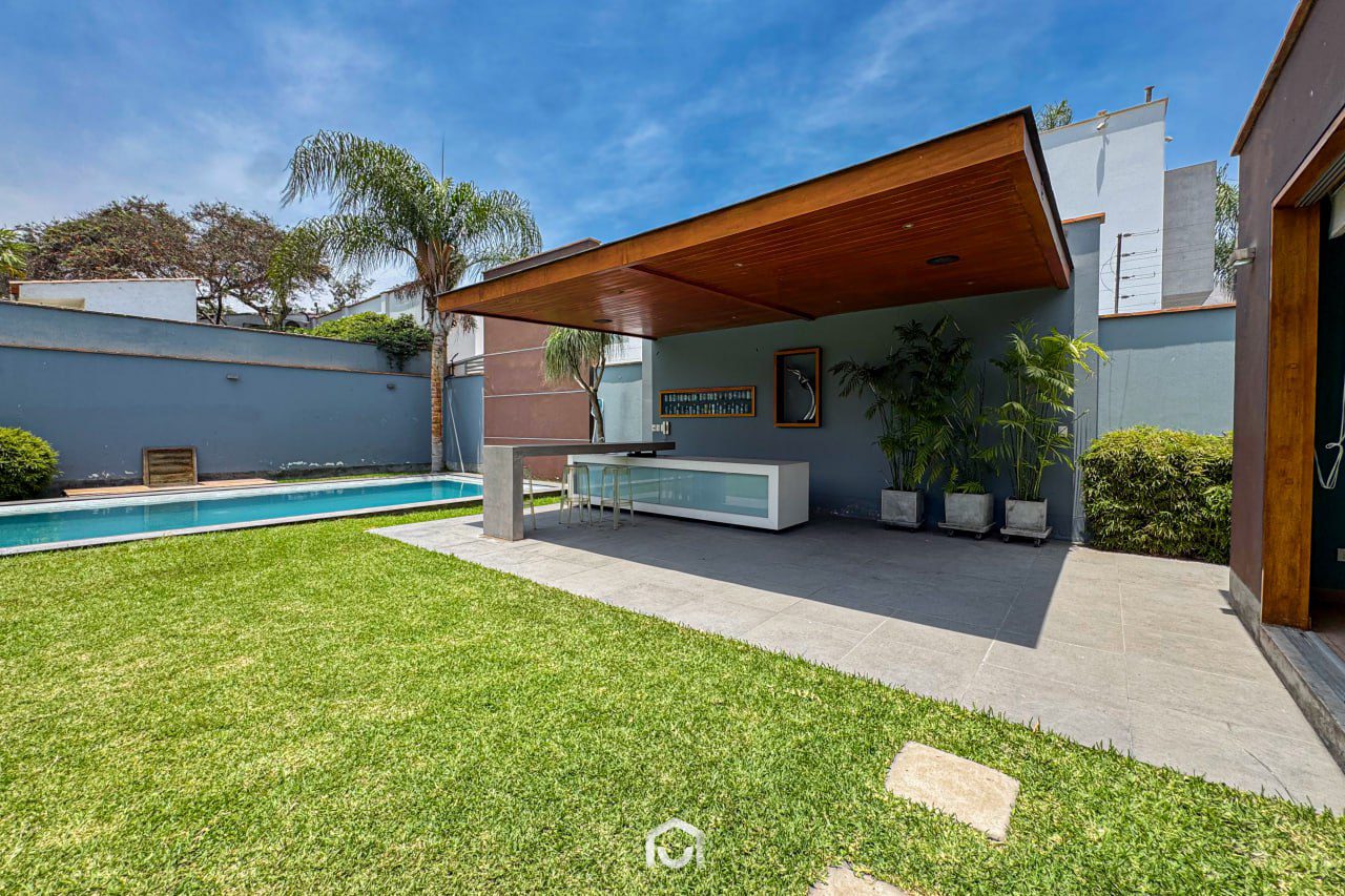 La propiedad ha sido completamente remodelada hace dos años y se encuentra en perfecto estado de conservación. Cuenta con dos plantas distribuidas eficientemente: en el primer nivel se ubican la sala y comedor con salida directa al jardín posterior, una terraza con zona de parrilla, cocina independiente con amplia alacena, dos dormitorios (uno de ellos ideal para visitas), y el cuarto de servicio con baño completo. En el segundo piso hay tres dormitorios, incluyendo el principal con baño incorporado y vista al jardín, además de una sala de estar amplia y luminosa. Los dormitorios secundarios comparten un baño completo. Dispone de 4 baños completos y 1 medio baño en total.
