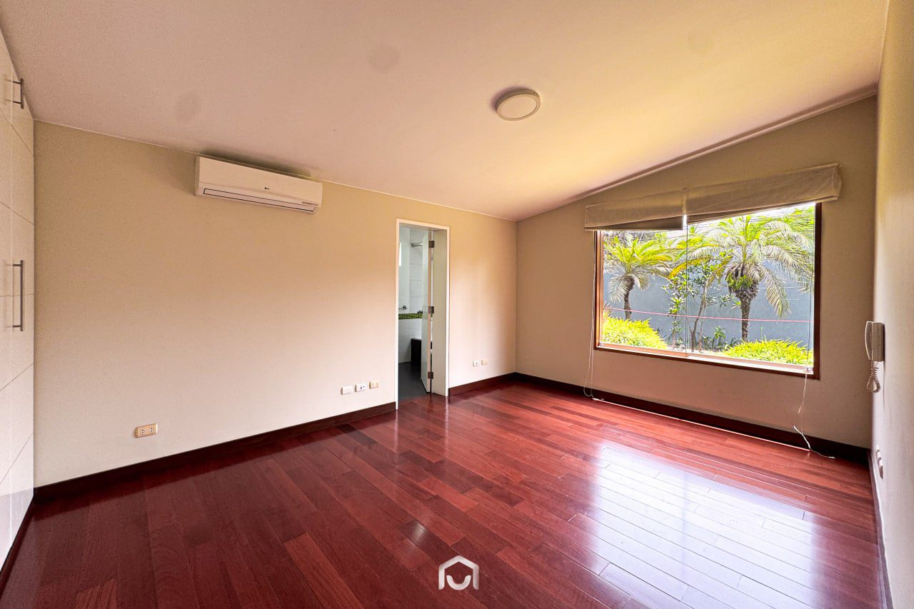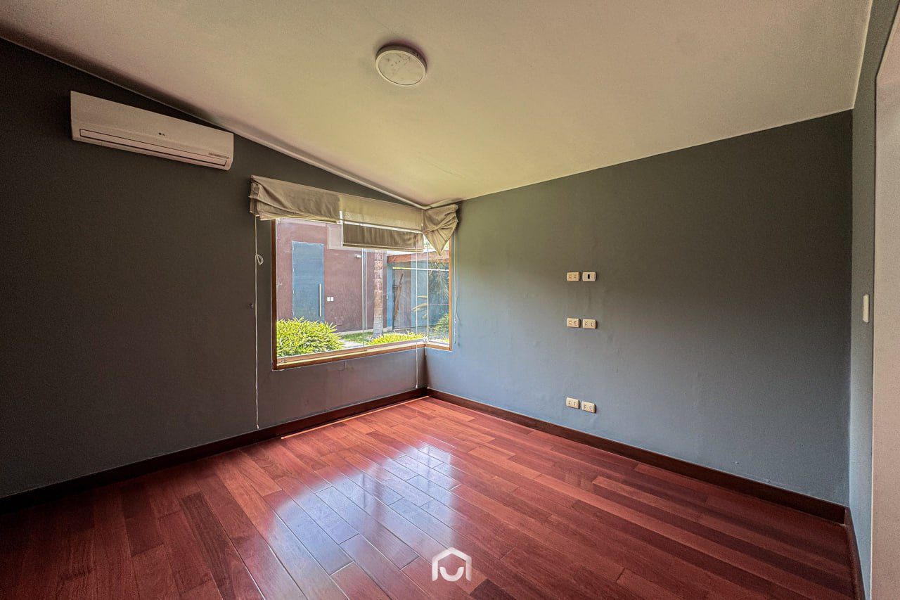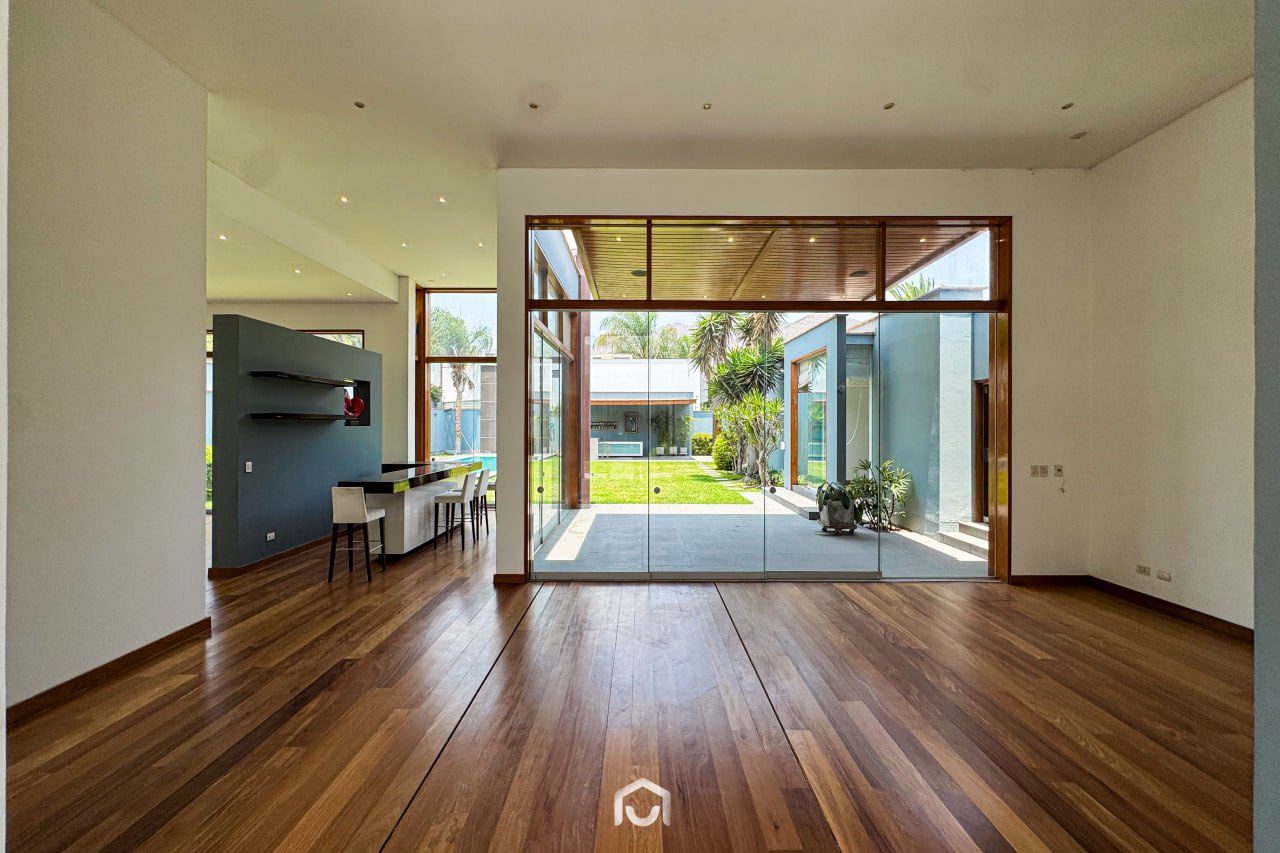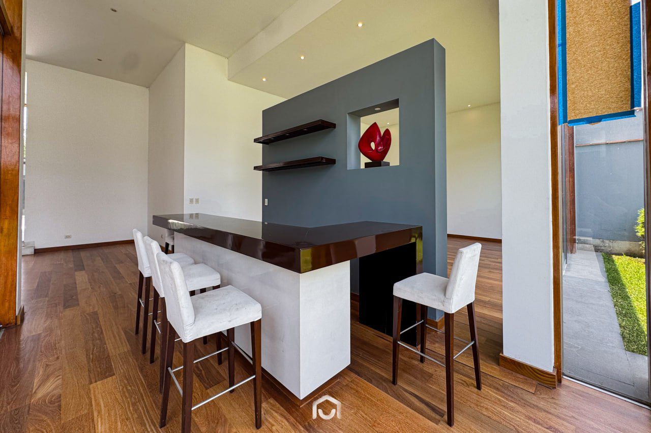 La propiedad ha sido completamente remodelada hace dos años y se encuentra en perfecto estado de conservación. Cuenta con dos plantas distribuidas eficientemente: en el primer nivel se ubican la sala y comedor con salida directa al jardín posterior, una terraza con zona de parrilla, cocina independiente con amplia alacena, dos dormitorios (uno de ellos ideal para visitas), y el cuarto de servicio con baño completo. En el segundo piso hay tres dormitorios, incluyendo el principal con baño incorporado y vista al jardín, además de una sala de estar amplia y luminosa. Los dormitorios secundarios comparten un baño completo. Dispone de 4 baños completos y 1 medio baño en total.