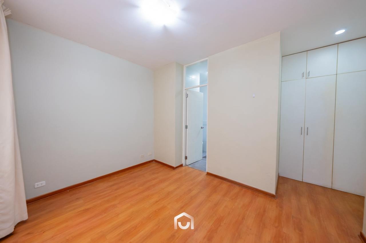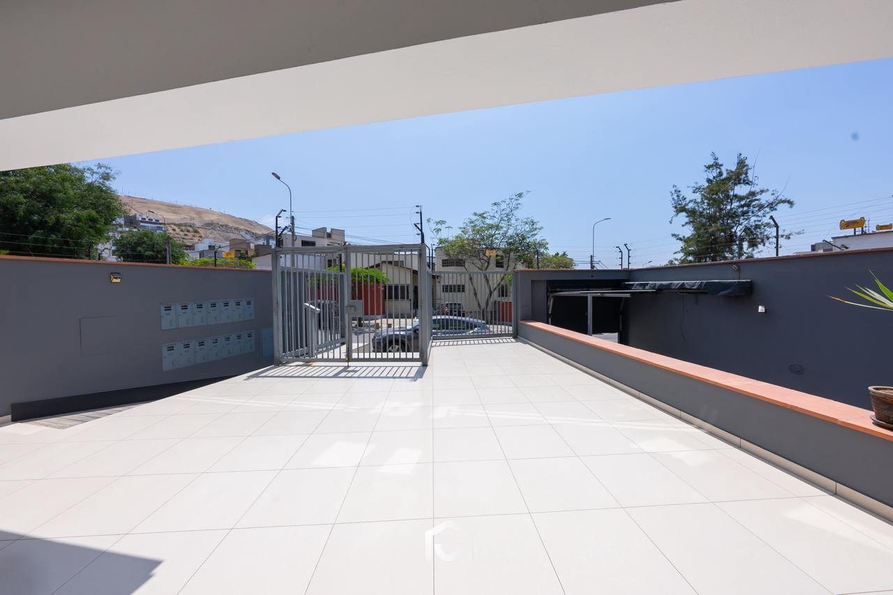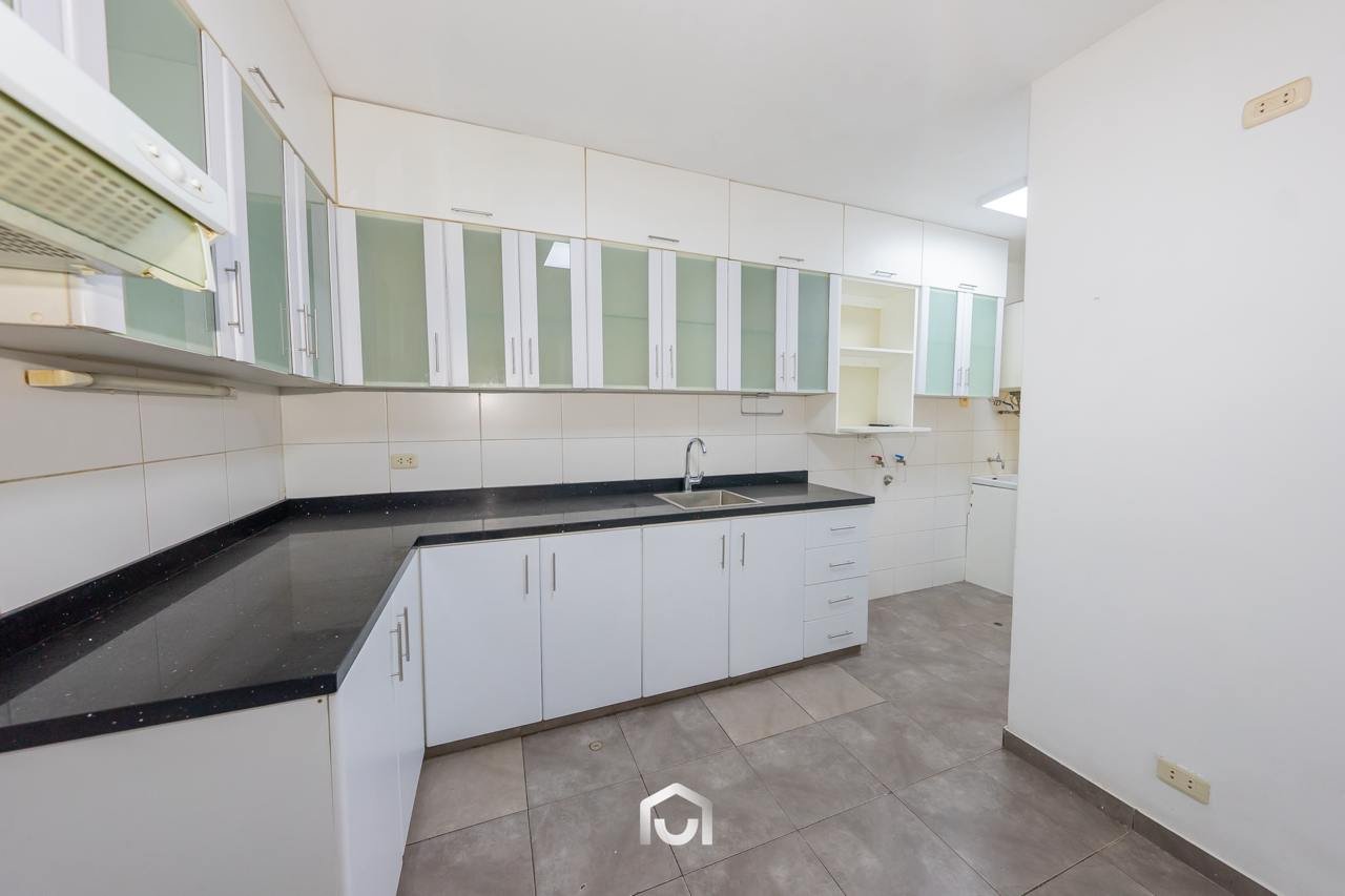 La propiedad se encuentra en el primer piso y cuenta con un área ocupada de 147.67 m² y un área techada de 131.67 m². Dispone de dos puertas de ingreso, una de ellas conectada directamente con la zona de estacionamientos. El interior presenta una sala-comedor con vista externa, dos dormitorios de buen tamaño siendo el principal con baño incorporado, un baño de visitas, así como cuarto y baño de servicio. La cocina y lavandería se integran a uno de los tres patios que forman parte del departamento, aportando ventilación e iluminación natural a los ambientes.