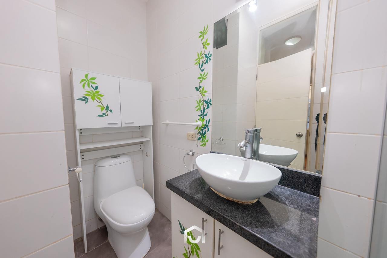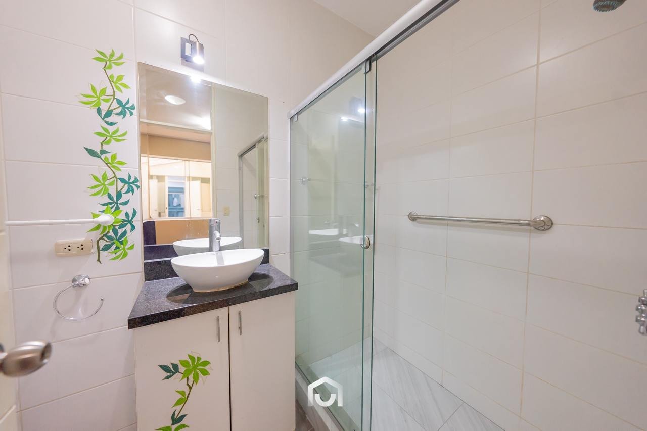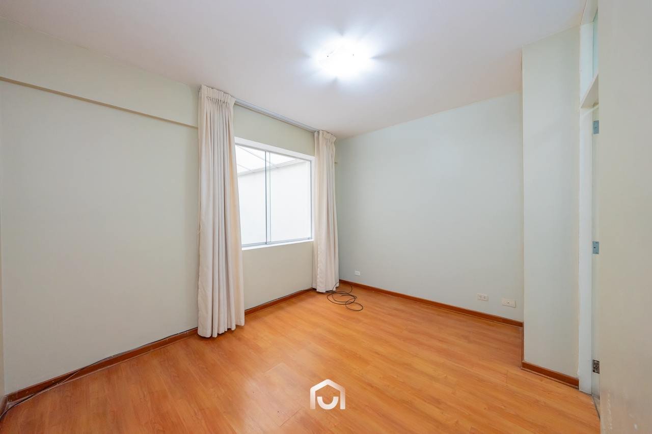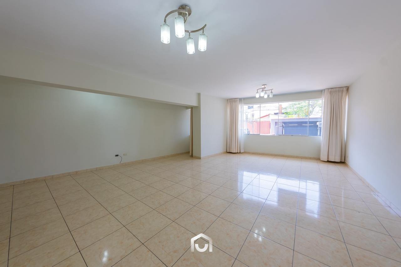 La propiedad se encuentra en el primer piso y cuenta con un área ocupada de 147.67 m² y un área techada de 131.67 m². Dispone de dos puertas de ingreso, una de ellas conectada directamente con la zona de estacionamientos. El interior presenta una sala-comedor con vista externa, dos dormitorios de buen tamaño siendo el principal con baño incorporado, un baño de visitas, así como cuarto y baño de servicio. La cocina y lavandería se integran a uno de los tres patios que forman parte del departamento, aportando ventilación e iluminación natural a los ambientes.