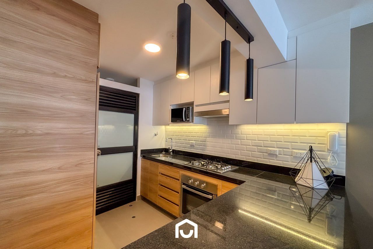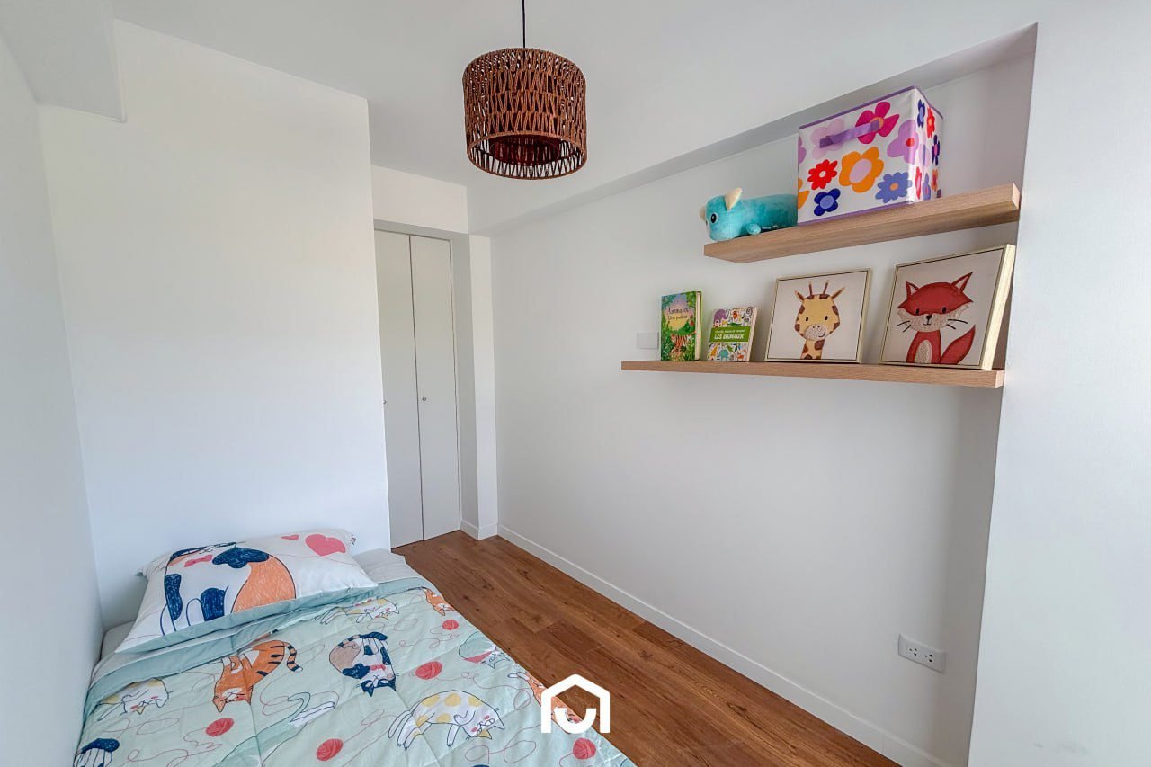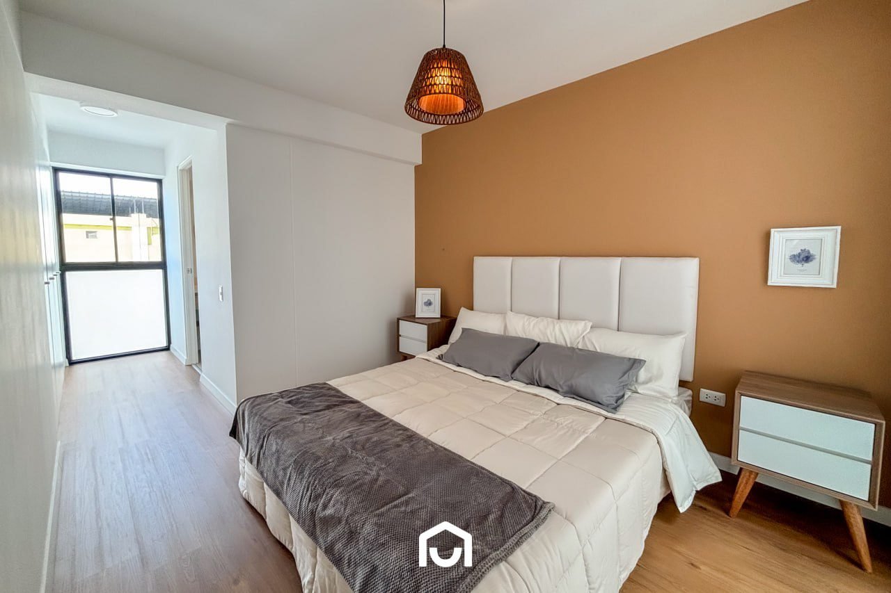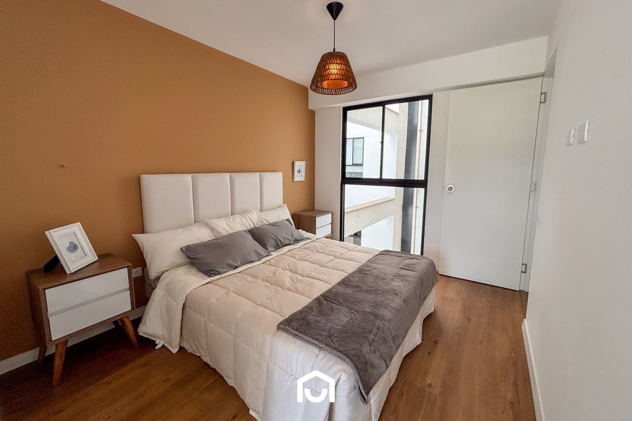 El inmueble es un departamento flat de estreno con vista exterior, que cuenta con un área techada y área ocupada de 91 m². La distribución incluye sala-comedor con balcón, cocina tipo americana equipada, tres dormitorios, una sala de estar, dos baños (el dormitorio principal con tina y el baño secundario con ducha) y lavandería discretamente integrada en un clóset. Los acabados son modernos y funcionales, y el edificio dispone de ascensor directo al departamento. Es una propiedad pet friendly y no está afecta al pago de alcabala. La entrega es inmediata.
