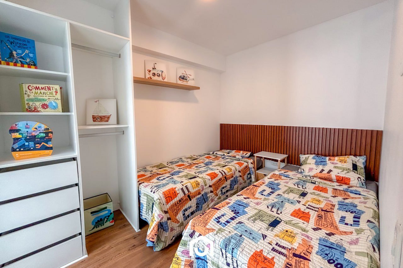 Entre las áreas comunes del edificio se incluyen zona de parrillas, lounge bar, gimnasio, patio y sala de juegos para niños. El mantenimiento mensual es de S/ 350. Adicionalmente, existe la opción de adquirir una cochera externa.